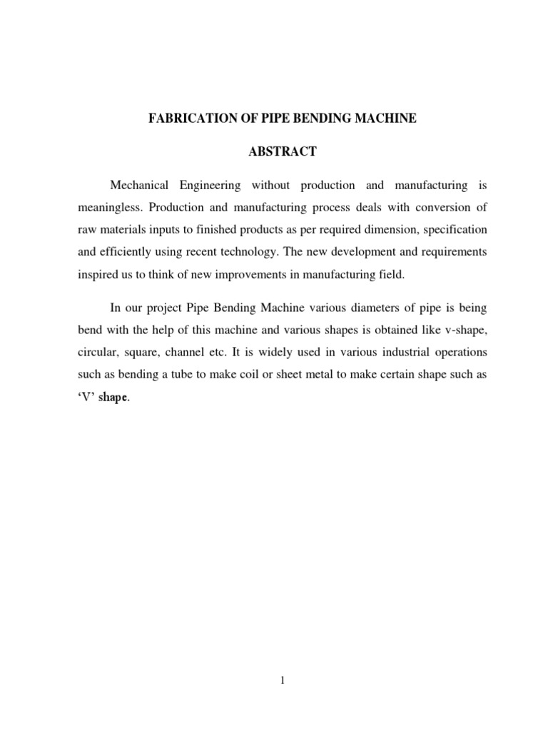 Hydraulic pipe bending machine project report pdf. Mainly preferable for small industries. The job say pipe is inserted in between the supporting pulleys and bending pulley attached to the hydraulic jack as shown in the figure. In our project pipe bending machine various diameters of pipe is being bend with the help of this machine and various shapes is obtained like v shape circular square channel etc. When all the parameters of bending are set a hydraulic jack is operated to achieve the required bend.