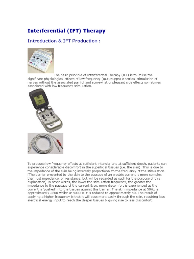 Despite their size they are. The basic principle of interferential therapy ift is to utilise the strong physiologicaportable iftl effects of low frequency 250pps electrical stimulation of nerves without the associated painful and somewhat unpleasant side effects sometimes associated with low frequency stim. Low frequency 250pps electrical stimulation of nerves without the associated painful and somewhat unpleasant side effects sometimes associated with low frequency stimulation. Electrical stimulation is a type of physical therapy modality used to accomplish various tasks in physical therapy pt.